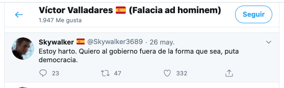 Otro Democrata Peon Mandando, de la extrema derecha, luego sale iglesias hablando de que mas parece que quieran dar un golpe de estado que de defender la democracia española y la gente dice, como puede decir eso.....